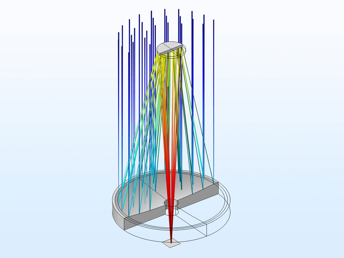 For users of the Ray Optics Module, COMSOL Multiphysics® version 5.3a brings new ray release distributions and more flexible boundary conditions. The dedicated Part Library for the Ray Optics Module has been expanded with new mirrors and lenses. Browse all of the Ray Optics Module updates in more detail below.